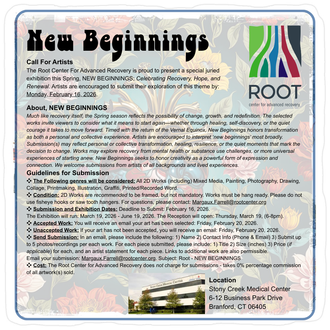 Root Center is pleased to present New Beginnings, an art exhibition celebrating recovery, hope, and renewal on the eve of the vernal equinox. On