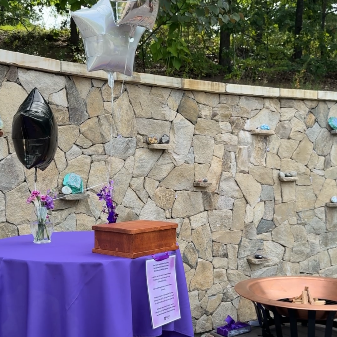Like last year, we put out a handmade box gifted to us by a patient at our Torrington Clinic, who is celebrating two years in recovery. The box is meant to encourage the community to write notes with the provided paper, and leave them in between the stones of our Remembrance Wall. This year, we included a Burning Ceremony in the garden, burning the notes collected last year and allowing the wind to take the ashes and wishes wherever they're meant to be. It was a beautiful display of hope, with the warmth of the fire offering comfort to those impacted by the disease of addiction.
